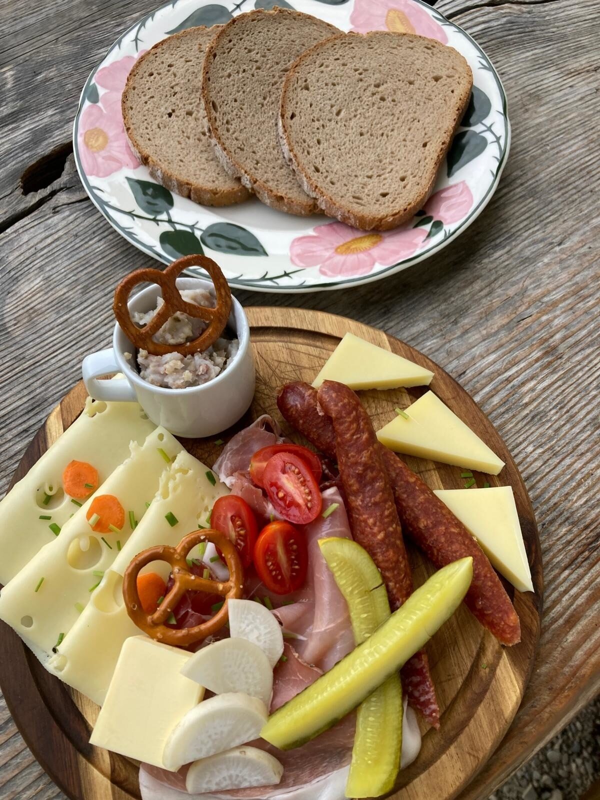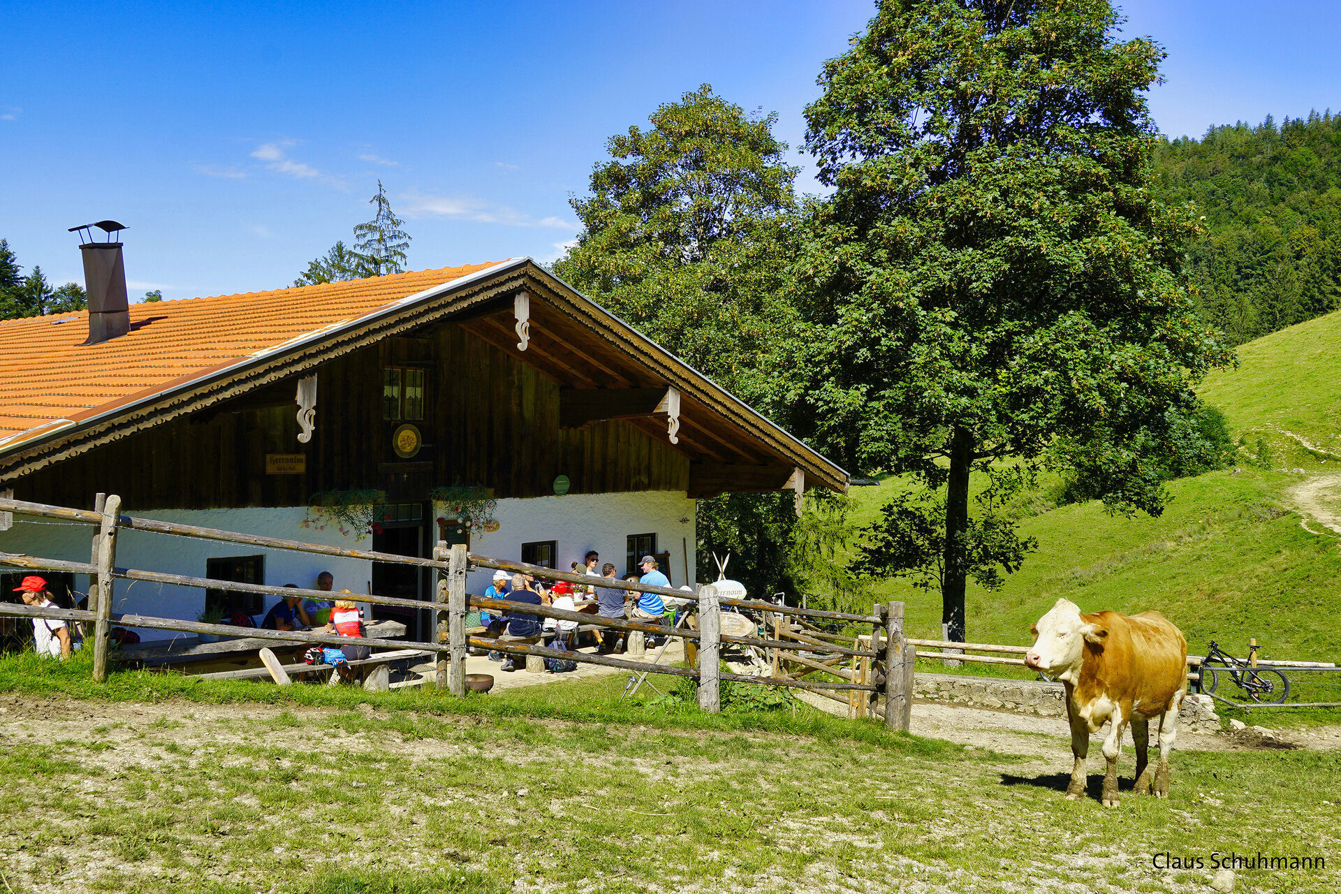 Almtypische Brotzeiten, wie Käse- und Speckbrot sowie ein kühles Weißbier lassen ein Wandererherz höher schlagen. Wer lieber einen guten Schoppen Rotwein oder einen fruchtigen Durstlöscher auf den urigen Holzbänken vor der Hütte bevorzugt, ist hier oben genau an der richtigen Adresse.