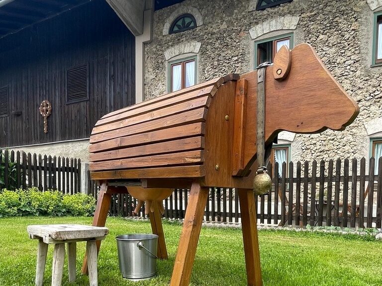 Erlebt das Melken hautnah an unserer Holzkuh „Susi“ mit ihrem Probiereuter! Hier könnt ihr selbst ausprobieren, wie sich das Melken anfühlt. Ob groß oder klein, bei Susi kann jeder Hand anlegen und das traditionelle Melken spielerisch erlernen.